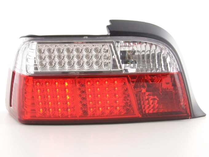 Led Rückleuchten BMW 3er Coupe Typ E36 Bj. 91-98 rot/weißLED Rückleuchten sind nicht nur eine meist durchgeführten Tuning Maßnahmen, sondern LED Rückleuchten gehören auch zu den beleibtesten Autoteilen um ein Auto innerhalb kürzester Zeit exklusiver, sportlicher und aggressiver wirken zu lassen.Mit dem Nachrüsten von hochwertigen LED Rückleuchten werten Sie Ihr Fahrzeug auch in Sachen Sicherheit entsprechend auf. LED Rückleuchten sind nicht nur optisch schöner sondern die Lichtausbeute der Hochleistung-LEDs der Rückleuchten bewirken sind auch für Ihren Hintermann ein prägbarer.Mit dem Nachrüsten von LED Rückleuchten geben Sie Ihrem Fahrzeug eine sportliche Optik bei Tag und bei Nacht. Die LED-Rückleuchten sind mehr als ein klares Signal für einen sportliches Fahrzeug.Fast wartungsfrei überzeugen sie mit einem um 0,2 Sekunden besseren Ansprechverhalten als herkömmliche Glühlampen. Dieser Unterschied kann auf der Straße Leben retten: Bei einer Geschwindigkeit von 100 km/h entspricht das immerhin 5,6 Meter.KEINE KOSTEN EINTRAGUNGSFREI: Dieses LED Rückleuchtenset ist wenn nicht anderes angegeben mit e-Zeichen ausgestattet und sind somit Eintragungsfrei. Es fallen keine Kosten für eine kostenpflichtige Eintragung in die Fahrzeugpapiere an.GERINGE EINBAUKOSTEN: Die LED Rückleuchten können problemlos von jeder Fachwerkstatt binnen ca. 1 Stunde eingebaut werden. Einbauanleitung: Die Scheinwerfer werden teilweise komplett mit Kabelbaum und einer "englischen" Einbauanleitung ausgeliefert oder mittels Stecker die auf den Serienkabelbaum passen. Die Qualität: Die LED Rückleuchten sind in Erstausrüsterqualität zu vergleichen und werden von namhaften Produzenten für das Zubehörgeschäft produziert.Der Preis: Im Regelfall sind diese LED Rückleuchten günstiger als die Originalen Rückleuchten. Hier lohnt sich ein Preischeck, selbst wenn nur im Falle einen Unfalls nur eine Rückleuchte defekt sein sollte. Die LED Rückleuchten sind eine günstige Umrüstmöglichkeit im Falle eines Unfalls oder im Falle einer Nachrüstung wenn die Originalrückleuchte undicht sein sollte!DIE LED Rückleuchtentechnik: Die LED Rückleuchten sind nicht nur technisch sondern auch optisch ausgereift und sind im übrigen schon 100.000 fach erfolgreich weltweit eingebaut. Sie möchten Ihrem Fahrzeug eine sportliche Note geben? Dann sollten Sie gleich dieses tolle Rückleuchtenset gleich bestellen.Weitere Ausführungsdetails: LED Rückleuchten in Originaloptik mit entsprechender Technikverbesserte Lichtwerte gegenüber Glühlampenrückleuchten durch neuerer Technikwenn nicht anders angegeben auch für Bordcomputer technisch passend Anschluss erfolgt über fahrzeugspezifischen Stecker Leuchtmittel für nicht LED Segmente sind im Lieferumfang nicht enthaltenkeine Eintragung und Eintragungskosten in die Papiere nötig, da mit "E" Prüfzeichen versehen Einfache Montage da die Original Rückleuchten Befestigungspunkte des Fahrzeugs verwendet werden.Lange Lebensdauer durch die Verwendung von hochwertigen Material und ChormbeschichtungenLieferumfang:1 Rückleuchtenset bestehenden aus einer rechten bzw. linken LED Rückleuchte