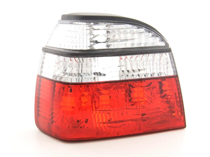 Rückleuchten VW Golf 3 Typ 1HXO Bj. 92-97 rot weißDesign Rückleuchten verändern das Erscheinungsbild Ihres Fahrzeuges und lassen Ihre Fahrzeug in einer sportlichen Optik dank technisch verbesserter Reflektoren in der Tuning bekannten sogenannte crystal Optik erscheinen. Diese Reflektoren zeigen eine größere optische Lichtwirkung und das zu einem extrem günstigen Preis.Mit dem Nachrüsten von hochwertigen Design Rückleuchten werten Sie Ihr Fahrzeug auch in Sachen Sicherheit entsprechend auf. Design Rückleuchten sind nicht nur optisch schöner sondern durch die Integration der neuen Reflektortechnik sind diese auch deutlich auffallender. Mit dieser schnellen Tuningmaßnahme haben Sie binnen Minuten eine Top Optik an Ihrem Fahrzeugheck.und geben Ihrem Fahrzeug eine sportliche Optik bei Tag und bei Nacht. Die Design Rückleuchten sind mehr als ein klares Signal für einen sportliches Fahrzeug.KEINE KOSTEN EINTRAGUNGSFREI: Dieses Rückleuchtenset ist wenn nicht anderes angegeben mit e-Zeichen ausgestattet und sind somit Eintragungsfrei. Es fallen keine Kosten für eine kostenpflichtige Eintragung in die Fahrzeugpapiere an.GERINGE EINBAUKOSTEN: Die Design Rückleuchten können problemlos von jeder Fachwerkstatt binnen ca. 1 Stunde eingebaut werden. Einbauanleitung: Die Design Rückleuchten werden teilweise komplett mit Kabelbaum und einer "englischen" Einbauanleitung ausgeliefert oder mittels Stecker die auf den Serienkabelbaum passen. Die Qualität: Die Design Rückleuchten sind in Erstausrüsterqualität zu vergleichen und werden von namhaftenProduzenten für das Zubehörgeschäft produziert.Der Preis: Im Regelfall sind diese Design Rückleuchten günstiger als die Originalen Rückleuchten. Hier lohnt sich ein Preischeck, selbst wenn nur im Falle einen Unfalls nur eine Rückleuchte defekt sein sollte. Die Rückleuchten sind eine günstige Umrüstmöglichkeit im Falle eines Unfalls oder im Falle einer Nachrüstung wenn die Originalrückleuchte undicht sein sollte!DIE Rückleuchtentechnik: Die Design Rückleuchten sind nicht nur technisch sondern auch optisch ausgereift und sind im übrigen schon 100.000 fach erfolgreich weltweit eingebaut. Sie möchten Ihrem Fahrzeug eine sportliche Note geben? Dann sollten Sie gleich dieses tolle Rückleuchtenset gleich bestellen.Weitere Ausführungsdetails: Design Rückleuchten in Tuningoptik mit entsprechender moderner Technikverbesserte optische Lichtwerte da Crystal-Technik im Einsatzwenn nicht anders angegeben auch für Bordcomputer technisch passend Anschluss erfolgt über fahrzeugspezifischen Stecker Leuchtmittel sind im Lieferumfang nicht enthaltenkeine Eintragung und Eintragungskosten in die Papiere nötig, da mit "E" Prüfzeichen versehen Einfache Montage da die Original Rückleuchten Befestigungspunkte des Fahrzeugs verwendet werden.Lange Lebensdauer durch die Verwendung von hochwertigen Material und ChormbeschichtungenLieferumfang:1 Rückleuchtenset bestehenden aus einer rechten bzw. linken Design Rückleuchte