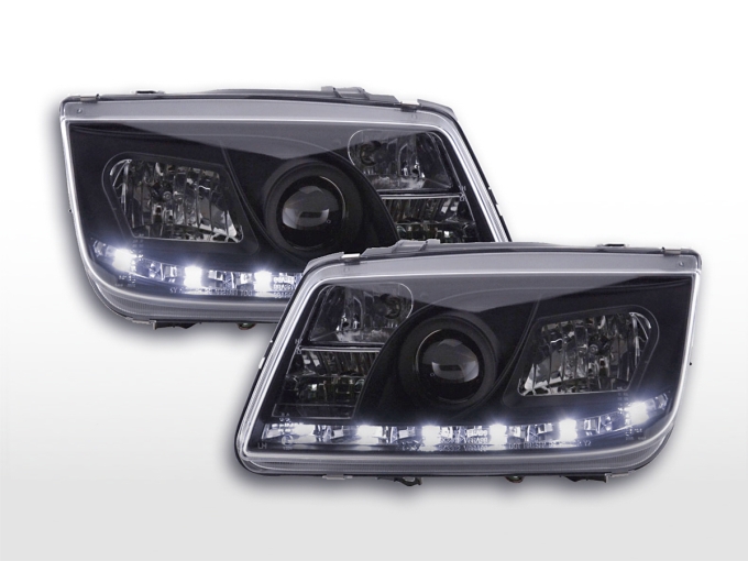 Tagfahrlicht Scheinwerfer Daylight VW Bora Bj. 98-05 schwarzDie Daylight Scheinwerfer weisen nicht nur in der Nacht sondern auch schon am Tag eine hervorragende sportliche Erscheinung für Ihr Auto aus. Die Eleganten LEDs verleihen Ihrem Auto eine Top Tuning Optik und nebenbei werden Sie auch noch von den anderen Verkehrsteilnehmer besser wahrgenommen! Mit dem Austausch Ihrer Serienscheinwerfer in die Daylightscheinwerfer erhalten Sie eine komplett neue zeitlose exklusive und sportliche Fahrzeugoptik! Nur nebenbei bemerkt sind die Daylight-Scheinwerfer das abgesagteste Design in Sachen Tuningscheinwerfer und verleihen Ihrem Fahrzeug auch eine sportlich aggressive Optik bei Tag und bei Nacht!KEINE KOSTEN EINTRAGUNGSFREI: Die Daylight Scheinwerfer werden mit e-Zeichen ausgeliefert und sind somit eintragungsfrei. GERINGE EINBAUKOSTEN: Die Daylight Scheinwerfer mit integrierten Tagfahrlicht oder auch Tagfahrleuchte genannt können problemlos von jeder Fachwerkstatt binnen ca. 2 Stunden eingebaut werden. Einbauanleitung: Die Scheinwerfer werden komplett mit Kabelbaum und einer "englischen" Einbauanleitung ausgeliefert. Die Qualität: der Scheinwerfer ist mit Erstausrüsterqualität zu vergleichen und werden von namhaften Produzenten für den Tuningbereich produziert. Der Preis: Im Regelfall sind diese Tuningscheinwerfer immer günstiger als die Originalen Scheinwerfer. Hier lohnt sich ein Preischeck, selbst wenn nur im Falle einen Unfalls nur ein Scheinwerfer defekt sein sollte. Die Daylight Scheinwerfer sind eine günstige Umrüstmöglichkeit im Falle eines Unfalls oder eine Nachrüstung.Die Scheinwerfer Technik: Die Scheinwerfer sind nicht nur technisch sondern auch optisch ausgereift und sind im übrigen schon 100.000 fach erfolgreich weltweit eingebaut. Sie möchten Ihrem Fahrzeug eine sportliche Note geben? Dann sollten Sie gleich dieses tolle Scheinwerferset bestellen. Weitere Ausführungsdetails: Scheinwerfer Klarglasoptik mit transparenter Streuscheibeverbesserte Lichtausbeute durch Klarglasscheibe und verbesserter Reflektorenwenn nicht anders angegeben inkl. elektrischer LWR ( Leuchtweitenregulierung ) Anschluss erfolgt über fahrzeugspezifischen Stecker Leuchtmittel sind im Lieferumfang nicht enthaltenkeine Eintragung und Eintragungskosten in die Papiere nötig, da mit "E" Prüfzeichen versehen Einfache Montage da die Original Scheinwerfer Befestigungspunkte des Fahrzeugs verwendet !Lange Lebensdauer durch die Verwendung von hochwertigen Material und ChormbeschichtungenLieferumfang:1 Satz Scheinwerfer ( links + rechts )