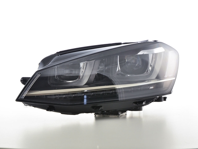 Scheinwerfer Daylight LED Tagfahrlicht VW Golf 7 Bj. ab 2012 schwarzDie Daylight Scheinwerfer weisen nicht nur in der Nacht sondern auch schon am Tag eine hervorragende sportliche Erscheinung für Ihr Auto aus. Die Eleganten LEDs verleihen Ihrem Auto eine Top Tuning Optik und nebenbei werden Sie auch noch von den anderen Verkehrsteilnehmer besser wahrgenommen! Mit dem Austausch Ihrer Serienscheinwerfer in die Daylightscheinwerfer erhalten Sie eine komplett neue zeitlose exklusive und sportliche Fahrzeugoptik! Nur nebenbei bemerkt sind die Daylight-Scheinwerfer das abgesagteste Design in Sachen Tuningscheinwerfer und verleihen Ihrem Fahrzeug auch eine sportlich aggressive Optik bei Tag und bei Nacht!KEINE KOSTEN EINTRAGUNGSFREI: Die Daylight Scheinwerfer werden mit e-Zeichen ausgeliefert und sind somit eintragungsfrei. GERINGE EINBAUKOSTEN: Die Daylight Scheinwerfer mit integrierten Tagfahrlicht oder auch Tagfahrleuchte genannt können problemlos von jeder Fachwerkstatt binnen ca. 2 Stunden eingebaut werden. Einbauanleitung: Die Scheinwerfer werden komplett mit Kabelbaum und einer "englischen" Einbauanleitung ausgeliefert. Die Qualität: der Scheinwerfer ist mit Erstausrüsterqualität zu vergleichen und werden von namhaften Produzenten für den Tuningbereich produziert. Der Preis: Im Regelfall sind diese Tuningscheinwerfer immer günstiger als die Originalen Scheinwerfer. Hier lohnt sich ein Preischeck, selbst wenn nur im Falle einen Unfalls nur ein Scheinwerfer defekt sein sollte. Die Daylight Scheinwerfer sind eine günstige Umrüstmöglichkeit im Falle eines Unfalls oder eine Nachrüstung.Die Scheinwerfer Technik: Die Scheinwerfer sind nicht nur technisch sondern auch optisch ausgereift und sind im übrigen schon 100.000 fach erfolgreich weltweit eingebaut. Sie möchten Ihrem Fahrzeug eine sportliche Note geben? Dann sollten Sie gleich dieses tolle Scheinwerferset bestellen. Weitere Ausführungsdetails: Scheinwerfer Klarglasoptik mit transparenter Streuscheibeverbesserte Lichtausbeute durch Klarglasscheibe und verbesserter Reflektorenwenn nicht anders angegeben inkl. elektrischer LWR ( Leuchtweitenregulierung ) Anschluss erfolgt über fahrzeugspezifischen Stecker Leuchtmittel sind im Lieferumfang nicht enthaltenkeine Eintragung und Eintragungskosten in die Papiere nötig, da mit "E" Prüfzeichen versehen Einfache Montage da die Original Scheinwerfer Befestigungspunkte des Fahrzeugs verwendet !Lange Lebensdauer durch die Verwendung von hochwertigen Material und ChormbeschichtungenLieferumfang:1 Satz Scheinwerfer ( links + rechts )