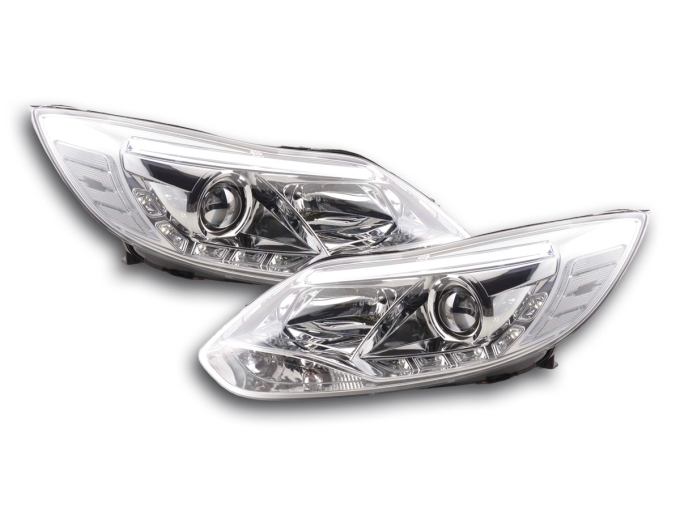 Scheinwerfer Daylight Set Ford Focus 3 Bj. 2010- chromDie Daylight Scheinwerfer weisen nicht nur in der Nacht sondern auch schon am Tag eine hervorragende sportliche Erscheinung für Ihr Auto aus. Die Eleganten LEDs verleihen Ihrem Auto eine Top Tuning Optik und nebenbei werden Sie auch noch von den anderen Verkehrsteilnehmer besser wahrgenommen! Mit dem Austausch Ihrer Serienscheinwerfer in die Daylightscheinwerfer erhalten Sie eine komplett neue zeitlose exklusive und sportliche Fahrzeugoptik! Nur nebenbei bemerkt sind die Daylight-Scheinwerfer das abgesagteste Design in Sachen Tuningscheinwerfer und verleihen Ihrem Fahrzeug auch eine sportlich aggressive Optik bei Tag und bei Nacht!KEINE KOSTEN EINTRAGUNGSFREI: Die Daylight Scheinwerfer werden mit e-Zeichen ausgeliefert und sind somit eintragungsfrei. GERINGE EINBAUKOSTEN: Die Daylight Scheinwerfer mit integrierten Tagfahrlicht oder auch Tagfahrleuchte genannt können problemlos von jeder Fachwerkstatt binnen ca. 2 Stunden eingebaut werden. Einbauanleitung: Die Scheinwerfer werden komplett mit Kabelbaum und einer "englischen" Einbauanleitung ausgeliefert. Die Qualität: der Scheinwerfer ist mit Erstausrüsterqualität zu vergleichen und werden von namhaften Produzenten für den Tuningbereich produziert. Der Preis: Im Regelfall sind diese Tuningscheinwerfer immer günstiger als die Originalen Scheinwerfer. Hier lohnt sich ein Preischeck, selbst wenn nur im Falle einen Unfalls nur ein Scheinwerfer defekt sein sollte. Die Daylight Scheinwerfer sind eine günstige Umrüstmöglichkeit im Falle eines Unfalls oder eine Nachrüstung.Die Scheinwerfer Technik: Die Scheinwerfer sind nicht nur technisch sondern auch optisch ausgereift und sind im übrigen schon 100.000 fach erfolgreich weltweit eingebaut. Sie möchten Ihrem Fahrzeug eine sportliche Note geben? Dann sollten Sie gleich dieses tolle Scheinwerferset bestellen. Weitere Ausführungsdetails: Scheinwerfer Klarglasoptik mit transparenter Streuscheibeverbesserte Lichtausbeute durch Klarglasscheibe und verbesserter Reflektorenwenn nicht anders angegeben inkl. elektrischer LWR ( Leuchtweitenregulierung ) Anschluss erfolgt über fahrzeugspezifischen Stecker Leuchtmittel sind im Lieferumfang nicht enthaltenkeine Eintragung und Eintragungskosten in die Papiere nötig, da mit "E" Prüfzeichen versehen Einfache Montage da die Original Scheinwerfer Befestigungspunkte des Fahrzeugs verwendet !Lange Lebensdauer durch die Verwendung von hochwertigen Material und ChormbeschichtungenLieferumfang:1 Satz Scheinwerfer ( links + rechts )