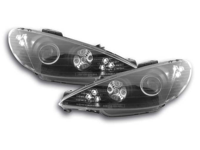 Scheinwerfer Daylight Peugeot 206 Bj. 98-05 schwarzDie Daylight Scheinwerfer weisen nicht nur in der Nacht sondern auch schon am Tag eine hervorragende sportliche Erscheinung für Ihr Auto aus. Die Eleganten LEDs verleihen Ihrem Auto eine Top Tuning Optik und nebenbei werden Sie auch noch von den anderen Verkehrsteilnehmer besser wahrgenommen! Mit dem Austausch Ihrer Serienscheinwerfer in die Daylightscheinwerfer erhalten Sie eine komplett neue zeitlose exklusive und sportliche Fahrzeugoptik! Nur nebenbei bemerkt sind die Daylight-Scheinwerfer das abgesagteste Design in Sachen Tuningscheinwerfer und verleihen Ihrem Fahrzeug auch eine sportlich aggressive Optik bei Tag und bei Nacht!KEINE KOSTEN EINTRAGUNGSFREI: Die Daylight Scheinwerfer werden mit e-Zeichen ausgeliefert und sind somit eintragungsfrei. GERINGE EINBAUKOSTEN: Die Daylight Scheinwerfer mit integrierten Tagfahrlicht oder auch Tagfahrleuchte genannt können problemlos von jeder Fachwerkstatt binnen ca. 2 Stunden eingebaut werden. Einbauanleitung: Die Scheinwerfer werden komplett mit Kabelbaum und einer "englischen" Einbauanleitung ausgeliefert. Die Qualität: der Scheinwerfer ist mit Erstausrüsterqualität zu vergleichen und werden von namhaften Produzenten für den Tuningbereich produziert. Der Preis: Im Regelfall sind diese Tuningscheinwerfer immer günstiger als die Originalen Scheinwerfer. Hier lohnt sich ein Preischeck, selbst wenn nur im Falle einen Unfalls nur ein Scheinwerfer defekt sein sollte. Die Daylight Scheinwerfer sind eine günstige Umrüstmöglichkeit im Falle eines Unfalls oder eine Nachrüstung.Die Scheinwerfer Technik: Die Scheinwerfer sind nicht nur technisch sondern auch optisch ausgereift und sind im übrigen schon 100.000 fach erfolgreich weltweit eingebaut. Sie möchten Ihrem Fahrzeug eine sportliche Note geben? Dann sollten Sie gleich dieses tolle Scheinwerferset bestellen. Weitere Ausführungsdetails: Scheinwerfer Klarglasoptik mit transparenter Streuscheibeverbesserte Lichtausbeute durch Klarglasscheibe und verbesserter Reflektorenwenn nicht anders angegeben inkl. elektrischer LWR ( Leuchtweitenregulierung ) Anschluss erfolgt über fahrzeugspezifischen Stecker Leuchtmittel sind im Lieferumfang nicht enthaltenkeine Eintragung und Eintragungskosten in die Papiere nötig, da mit "E" Prüfzeichen versehen Einfache Montage da die Original Scheinwerfer Befestigungspunkte des Fahrzeugs verwendet !Lange Lebensdauer durch die Verwendung von hochwertigen Material und ChormbeschichtungenLieferumfang:1 Satz Scheinwerfer ( links + rechts )