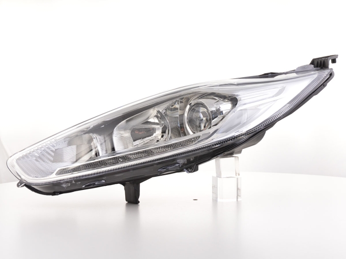 Design Scheinwerfer Ford Fiesta Bj. ab 2013-2017 chromDie Designscheinwerfer ändern die Erscheinung Ihres Fahrzeuges in eine sportliche und zeitlose Optik. Durch die Klarglasoptik werden zudem die Licht und Sichtverhältnisse Ihres Scheinwerfers deutlich verbessert und optimiert. Die sportliche Erscheinung ist dabei nur eine gewünschte und gern gesehene Nebensache! Die Designscheinwerfer haben eine Top Optik zum günstigen Preis und im Regelfall auch deutlich günstiger als originale Austauschscheinwerfer.KEINE KOSTEN EINTRAGUNGSFREI: Die Design Scheinwerfer werden mit e-Zeichen ausgeliefert ( wenn nicht anders angegeben ) und sind somit eintragungsfrei GERINGE EINBAUKOSTEN: Die Design Scheinwerfer können problemlos von jeder Fachwerkstatt binnen ca. 2 Stunden eingebaut werden. Einbauanleitung: Die Scheinwerfer werden komplett mit Kabelbaum und einer englischen Einbauanleitung ausgeliefert. Die Qualität: Die Scheinwerfer sind mit Erstausrüsterqualität zu vergleichen und werden von namhaften Produzenten für den Tuningbereich produziert. Der Preis: Im Regelfall sind diese Tuningscheinwerfer immer günstiger als die originalen Scheinwerfer. Hier lohnt sich ein Preischeck, selbst wenn im Falle eines Unfalls nur ein Scheinwerfer defekt sein sollte. Die Design Scheinwerfer sind eine günstige Umrüstmöglichkeit im Falle eines Unfalls oder einer Nachrüstung. Die Scheinwerfer Technik: Die Scheinwerfer sind nicht nur technisch sondern auch optisch ausgereift und sind im übrigen schon 100.000 fach erfolgreich weltweit eingebaut. Sie möchten Ihrem Fahrzeug eine sportliche Note geben? Dann sollten Sie gleich dieses tolle Scheinwerferset bestellen. Weitere Ausführungsdetails: • Scheinwerfer Klarglasoptik mit transparenter Streuscheibe• verbesserte Lichtausbeute durch Klarglasscheibe und verbesserter Reflektoren• wenn nicht anders angegeben inkl. elektrischer LWR ( Leuchtweitenregulierung ) • Anschluss erfolgt über fahrzeugspezifischen Stecker • Leuchtmittel sind im Lieferumfang nicht enthalten• keine Eintragung und Eintragungskosten in die Papiere nötig, da mit E Prüfzeichen versehen • Einfache Montage da die Original Scheinwerfer Befestigungspunkte des Fahrzeugs verwendet werden• Lange Lebensdauer durch die Verwendung von hochwertigen Material und ChrombeschichtungenLieferumfang:• 1 Satz Scheinwerfer ( links + rechts )