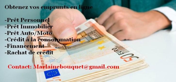 Guten Tag, um Ihnen zu helfen, Ihre vielfältigen finanziellen Sorgen zu überwinden und Ihre Ziele für die Zukunft in einem Rahmen ohne Schwierigkeiten zu erreichen, unterbreite ich (Privatpersonen, Unternehmen, wie Vereinen) in Schwierigkeiten oder Hilfesuchenden ein Kreditangebot einige ihrer finanziellen Probleme oder um ein Unternehmen zu gründen. Wahlbetrag zwischen 2.000 € und 50.000.000 € Wahl der Rückzahlungsfrist: maximal 14 Jahre. Jährlicher Tilgungssatz 0,80 % bei 2 % Zinsen. In diesem Sinne schreiben Sie mich bitte an oder kontaktieren Sie mich per E-Mail, wenn Sie Interesse an meinem Kreditangebot haben.
