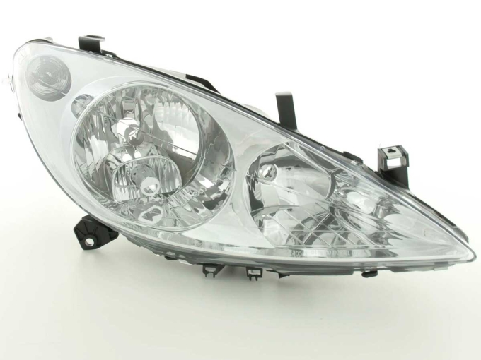 Verschleißteile Scheinwerfer rechts Peugeot 307 Bj. 01-05Die Zubehör Scheinwerfer sind die perfekte Alternative zu den Originalscheinwerfer jedoch preistechnisch im Regelfall deutlich günstiger. Es ist schon ärgerlich genug wenn man in einen Unfall verwickelt war und dann mit hohen Kosten für die Reparatur konfrontiert wird. Mit den Zubehörscheinwerfern haben Sie die Möglichkeit Geld zu sparen und bei der Qualität der Scheinwerfer keine Einbußen zu haben. KEINE KOSTEN EINTRAGUNGSFREI: Die Zubehör Scheinwerfer werden mit e-Zeichen ausgeliefert und sind somit eintragungsfrei GERINGE EINBAUKOSTEN: Die Zubehörscheinwerfer können problemlos von jeder Fachwerkstatt binnen ca. 2 Stunden eingebaut werden. Einbauanleitung: Die Scheinwerfer werden teilweise komplett mit Kabelbaum und einer englischen Einbauanleitung ausgeliefert oder mittels Stecker die auf den Serienkabelbaum passen. Die Qualität: Die Scheinwerfer sind mit Erstausrüsterqualität zu vergleichen und werden von namhaften Produzenten für das Zubehörgeschäft produziert.Der Preis: Im Regelfall sind diese Zubehörscheinwerfer immer günstiger als die Originalen Scheinwerfer. Hier lohnt sich ein Preischeck, selbst wenn im Falle einen Unfalls nur ein Scheinwerfer defekt sein sollte. Die Zubehörscheinwerfer sind eine günstige Umrüstmöglichkeit im Falle eines Unfalls oder im Falle einer Nachrüstung wenn die Streuscheibe bei Steinschlägen in Mitleidenschaft gezogen wurde!Die Scheinwerfer Technik: Die Scheinwerfer sind nicht nur technisch sondern auch optisch ausgereift und sind im übrigen schon 100.000 fach erfolgreich weltweit eingebaut. Sie möchten Ihrem Fahrzeug eine sportliche Note geben? Dann sollten Sie gleich dieses tolle Scheinwerferset bestellen. Weitere Ausführungsdetails: • Scheinwerfer in Originaloptik mit entsprechender Technik• verbesserte Lichtausbeute durch verbesserter Reflektoren und neuerer Technik• wenn nicht anders angegeben inkl. elektrischer LWR ( Leuchtweitenregulierung ) • Anschluss erfolgt über fahrzeugspezifischen Stecker • Leuchtmittel sind im Lieferumfang nicht enthalten• keine Eintragung und Eintragungskosten in die Papiere nötig, da mit E Prüfzeichen versehen • Einfache Montage da die Original Scheinwerfer Befestigungspunkte des Fahrzeugs verwendet werden• Lange Lebensdauer durch die Verwendung von hochwertigen Material und Chrombeschichtungen Lieferumfang:• 1 Scheinwerfer wie angegebenen rechts oder links