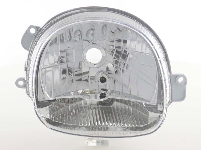 Verschleißteile Scheinwerfer rechts Renault Twingo (Typ C06) Bj. 01-07Die Zubehör Scheinwerfer sind die perfekte Alternative zu den Originalscheinwerfer jedoch preistechnisch im Regelfall deutlich günstiger. Es ist schon ärgerlich genug wenn man in einen Unfall verwickelt war und dann mit hohen Kosten für die Reparatur konfrontiert wird. Mit den Zubehörscheinwerfern haben Sie die Möglichkeit Geld zu sparen und bei der Qualität der Scheinwerfer keine Einbußen zu haben. KEINE KOSTEN EINTRAGUNGSFREI: Die Zubehör Scheinwerfer werden mit e-Zeichen ausgeliefert und sind somit eintragungsfrei GERINGE EINBAUKOSTEN: Die Zubehörscheinwerfer können problemlos von jeder Fachwerkstatt binnen ca. 2 Stunden eingebaut werden. Einbauanleitung: Die Scheinwerfer werden teilweise komplett mit Kabelbaum und einer englischen Einbauanleitung ausgeliefert oder mittels Stecker die auf den Serienkabelbaum passen. Die Qualität: Die Scheinwerfer sind mit Erstausrüsterqualität zu vergleichen und werden von namhaften Produzenten für das Zubehörgeschäft produziert.Der Preis: Im Regelfall sind diese Zubehörscheinwerfer immer günstiger als die Originalen Scheinwerfer. Hier lohnt sich ein Preischeck, selbst wenn im Falle einen Unfalls nur ein Scheinwerfer defekt sein sollte. Die Zubehörscheinwerfer sind eine günstige Umrüstmöglichkeit im Falle eines Unfalls oder im Falle einer Nachrüstung wenn die Streuscheibe bei Steinschlägen in Mitleidenschaft gezogen wurde!Die Scheinwerfer Technik: Die Scheinwerfer sind nicht nur technisch sondern auch optisch ausgereift und sind im übrigen schon 100.000 fach erfolgreich weltweit eingebaut. Sie möchten Ihrem Fahrzeug eine sportliche Note geben? Dann sollten Sie gleich dieses tolle Scheinwerferset bestellen. Weitere Ausführungsdetails: • Scheinwerfer in Originaloptik mit entsprechender Technik• verbesserte Lichtausbeute durch verbesserter Reflektoren und neuerer Technik• wenn nicht anders angegeben inkl. elektrischer LWR ( Leuchtweitenregulierung ) • Anschluss erfolgt über fahrzeugspezifischen Stecker • Leuchtmittel sind im Lieferumfang nicht enthalten• keine Eintragung und Eintragungskosten in die Papiere nötig, da mit E Prüfzeichen versehen • Einfache Montage da die Original Scheinwerfer Befestigungspunkte des Fahrzeugs verwendet werden• Lange Lebensdauer durch die Verwendung von hochwertigen Material und Chrombeschichtungen Lieferumfang:• 1 Scheinwerfer wie angegebenen rechts oder links