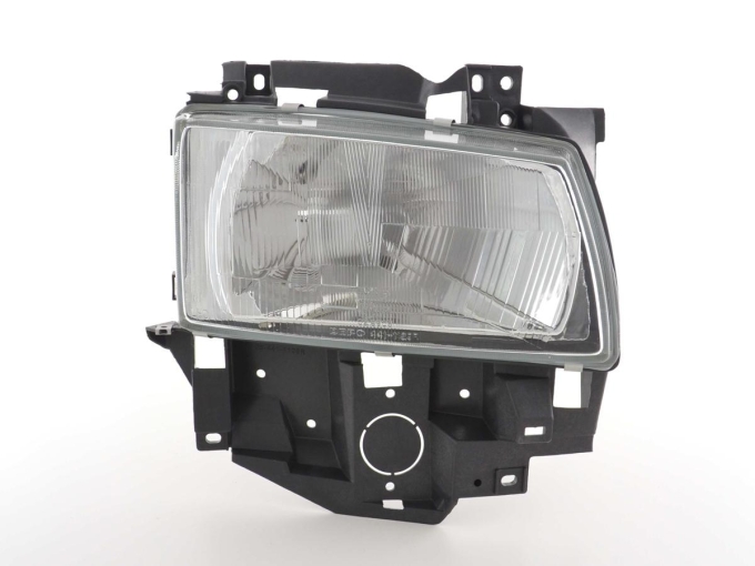 Verschleißteile Scheinwerfer rechts VW Bus (Typ T4) Bj. 96-03Die Zubehör Scheinwerfer sind die perfekte Alternative zu den Originalscheinwerfer jedoch preistechnisch im Regelfall deutlich günstiger. Es ist schon ärgerlich genug wenn man in einen Unfall verwickelt war und dann mit hohen Kosten für die Reparatur konfrontiert wird. Mit den Zubehörscheinwerfern haben Sie die Möglichkeit Geld zu sparen und bei der Qualität der Scheinwerfer keine Einbußen zu haben. KEINE KOSTEN EINTRAGUNGSFREI: Die Zubehör Scheinwerfer werden mit e-Zeichen ausgeliefert und sind somit eintragungsfrei GERINGE EINBAUKOSTEN: Die Zubehörscheinwerfer können problemlos von jeder Fachwerkstatt binnen ca. 2 Stunden eingebaut werden. Einbauanleitung: Die Scheinwerfer werden teilweise komplett mit Kabelbaum und einer englischen Einbauanleitung ausgeliefert oder mittels Stecker die auf den Serienkabelbaum passen. Die Qualität: Die Scheinwerfer sind mit Erstausrüsterqualität zu vergleichen und werden von namhaften Produzenten für das Zubehörgeschäft produziert.Der Preis: Im Regelfall sind diese Zubehörscheinwerfer immer günstiger als die Originalen Scheinwerfer. Hier lohnt sich ein Preischeck, selbst wenn im Falle einen Unfalls nur ein Scheinwerfer defekt sein sollte. Die Zubehörscheinwerfer sind eine günstige Umrüstmöglichkeit im Falle eines Unfalls oder im Falle einer Nachrüstung wenn die Streuscheibe bei Steinschlägen in Mitleidenschaft gezogen wurde!Die Scheinwerfer Technik: Die Scheinwerfer sind nicht nur technisch sondern auch optisch ausgereift und sind im übrigen schon 100.000 fach erfolgreich weltweit eingebaut. Sie möchten Ihrem Fahrzeug eine sportliche Note geben? Dann sollten Sie gleich dieses tolle Scheinwerferset bestellen. Weitere Ausführungsdetails: • Scheinwerfer in Originaloptik mit entsprechender Technik• verbesserte Lichtausbeute durch verbesserter Reflektoren und neuerer Technik• wenn nicht anders angegeben inkl. elektrischer LWR ( Leuchtweitenregulierung ) • Anschluss erfolgt über fahrzeugspezifischen Stecker • Leuchtmittel sind im Lieferumfang nicht enthalten• keine Eintragung und Eintragungskosten in die Papiere nötig, da mit E Prüfzeichen versehen • Einfache Montage da die Original Scheinwerfer Befestigungspunkte des Fahrzeugs verwendet werden• Lange Lebensdauer durch die Verwendung von hochwertigen Material und Chrombeschichtungen Lieferumfang:• 1 Scheinwerfer wie angegebenen rechts oder links