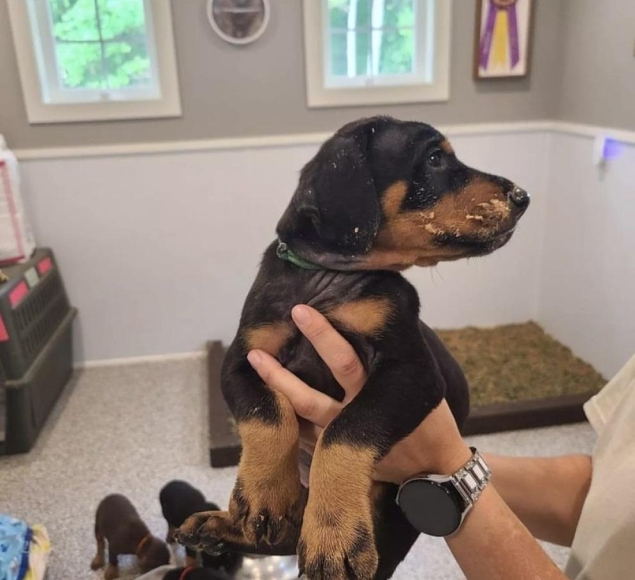 Dobermann ist eine wunderschöne, große Hunderasse mit spitzen oder hängenden Ohren. Diese Rasse ist sehr beschützend und territorial und versteht sich gut mit Familien und Kindern. Sie ist sehr verspielt und liebt Spielzeug. Sie ist geimpft, entwurmt, gechipt und hat einen blauen EU-Heimtierausweis. Sie ist sehr freundlich und anhänglich, und wir würden uns sehr freuen, wenn sie ein liebevolles neues Zuhause fände.