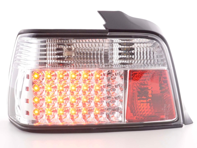 Led Rückleuchten BMW 3er Limousine Typ E36 Bj. 91-98 chromLED Rückleuchten sind nicht nur eine meist durchgeführten Tuning Maßnahmen, sondern LED Rückleuchten gehören auch zu den beleibtesten Autoteilen um ein Auto innerhalb kürzester Zeit exklusiver, sportlicher und aggressiver wirken zu lassen.Mit dem Nachrüsten von hochwertigen LED Rückleuchten werten Sie Ihr Fahrzeug auch in Sachen Sicherheit entsprechend auf. LED Rückleuchten sind nicht nur optisch schöner sondern die Lichtausbeute der Hochleistung-LEDs der Rückleuchten bewirken sind auch für Ihren Hintermann ein prägbarer.Mit dem Nachrüsten von LED Rückleuchten geben Sie Ihrem Fahrzeug eine sportliche Optik bei Tag und bei Nacht. Die LED-Rückleuchten sind mehr als ein klares Signal für einen sportliches Fahrzeug.Fast wartungsfrei überzeugen sie mit einem um 0,2 Sekunden besseren Ansprechverhalten als herkömmliche Glühlampen. Dieser Unterschied kann auf der Straße Leben retten: Bei einer Geschwindigkeit von 100 km/h entspricht das immerhin 5,6 Meter.KEINE KOSTEN EINTRAGUNGSFREI: Dieses LED Rückleuchtenset ist wenn nicht anderes angegeben mit e-Zeichen ausgestattet und sind somit Eintragungsfrei. Es fallen keine Kosten für eine kostenpflichtige Eintragung in die Fahrzeugpapiere an.GERINGE EINBAUKOSTEN: Die LED Rückleuchten können problemlos von jeder Fachwerkstatt binnen ca. 1 Stunde eingebaut werden. Einbauanleitung: Die Scheinwerfer werden teilweise komplett mit Kabelbaum und einer "englischen" Einbauanleitung ausgeliefert oder mittels Stecker die auf den Serienkabelbaum passen. Die Qualität: Die LED Rückleuchten sind in Erstausrüsterqualität zu vergleichen und werden von namhaften Produzenten für das Zubehörgeschäft produziert.Der Preis: Im Regelfall sind diese LED Rückleuchten günstiger als die Originalen Rückleuchten. Hier lohnt sich ein Preischeck, selbst wenn nur im Falle einen Unfalls nur eine Rückleuchte defekt sein sollte. Die LED Rückleuchten sind eine günstige Umrüstmöglichkeit im Falle eines Unfalls oder im Falle einer Nachrüstung wenn die Originalrückleuchte undicht sein sollte!DIE LED Rückleuchtentechnik: Die LED Rückleuchten sind nicht nur technisch sondern auch optisch ausgereift und sind im übrigen schon 100.000 fach erfolgreich weltweit eingebaut. Sie möchten Ihrem Fahrzeug eine sportliche Note geben? Dann sollten Sie gleich dieses tolle Rückleuchtenset gleich bestellen.Weitere Ausführungsdetails: LED Rückleuchten in Originaloptik mit entsprechender Technikverbesserte Lichtwerte gegenüber Glühlampenrückleuchten durch neuerer Technikwenn nicht anders angegeben auch für Bordcomputer technisch passend Anschluss erfolgt über fahrzeugspezifischen Stecker Leuchtmittel für nicht LED Segmente sind im Lieferumfang nicht enthaltenkeine Eintragung und Eintragungskosten in die Papiere nötig, da mit "E" Prüfzeichen versehen Einfache Montage da die Original Rückleuchten Befestigungspunkte des Fahrzeugs verwendet werden.Lange Lebensdauer durch die Verwendung von hochwertigen Material und ChormbeschichtungenLieferumfang:1 Rückleuchtenset bestehenden aus einer rechten bzw. linken LED Rückleuchte