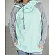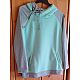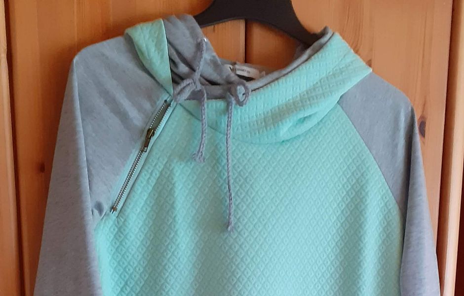Angeboten wird ein schöner neuer Damen Kapuzenpullover gr. L mintgrün vorne und hinten.Die Ärmel sind grau. Doppellagige Kapuze,2 Taschen von AITOS.