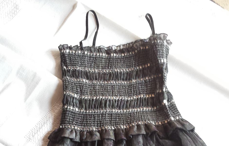 Ganz edles mädchenkleid, oben gesmoggt mit silbernem faden