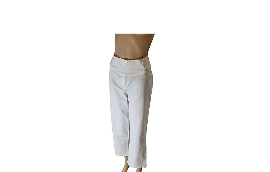 Umstandshose 22430-I christoff weiß Nabelhöhe gerade Hosenform Größe 38 Gesamtlänge ca. 93 cm Innenbeinlänge ca. 65 cm Stretchbund lose ca. 44 cm Stretchbundhöhe ca. 10 cm Oberschenkelweite ca. 28 cm Hosenschlag ca. 23 cm Hosentaschen: 2x hinten