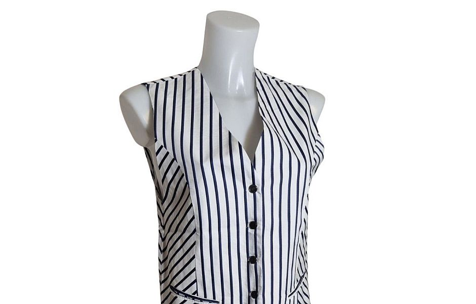 Weste 22555 Jobeline Damenweste weiß mit blau-schwarzen Längsstreifen - 2 Taschen - Größe 36