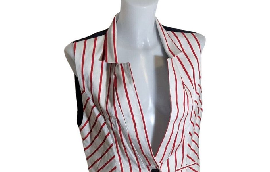 Weste 22563 Bellezza Damenweste weiß mit roten Längsstreifen - Größe 38