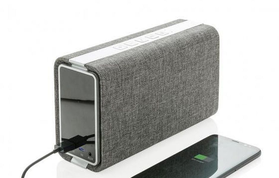 Der kabellose Lautsprecher Vogue 6W kombiniert zwei wesentliche Merkmale des modernen Lebens: das Hören Ihrer Lieblingsmusik und das Aufladen Ihres mobilen Geräts. Das trendige Stoffdesign eignet sich perfekt für Ihren Schreibtisch, zu Hause oder unterwegs. Der Lautsprecher verwendet BT 5.0 Wireless für eine gute Verbindung und hat eine Reichweite von bis zu 10 Metern. Mit dem 4.000 mAh-Akku können Sie bis zu 10 Stunden lang Musik abspielen oder Ihr Mobiltelefon zweimal aufladen (je nach Akku des Mobiltelefons). Eingang 5V / 1A Ausgang 5V / 1A.
