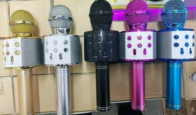 Dies ist ein magisches Mikrofon und ein Bluetooth-Lautsprecher in einem, mit denen Sie Lieder singen und abspielen können Freuen Sie sich auf schöne Karaoke Tage und Super Kindergeburtstage.