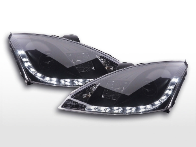 Tagfahrlicht Scheinwerfer Daylight Ford Focus 1 C170 schwarzDie Daylight Scheinwerfer weisen nicht nur in der Nacht sondern auch schon am Tag eine hervorragende sportliche Erscheinung für Ihr Auto aus. Die Eleganten LEDs verleihen Ihrem Auto eine Top Tuning Optik und nebenbei werden Sie auch noch von den anderen Verkehrsteilnehmer besser wahrgenommen! Mit dem Austausch Ihrer Serienscheinwerfer in die Daylightscheinwerfer erhalten Sie eine komplett neue zeitlose exklusive und sportliche Fahrzeugoptik! Nur nebenbei bemerkt sind die Daylight-Scheinwerfer das abgesagteste Design in Sachen Tuningscheinwerfer und verleihen Ihrem Fahrzeug auch eine sportlich aggressive Optik bei Tag und bei Nacht!KEINE KOSTEN EINTRAGUNGSFREI: Die Daylight Scheinwerfer werden mit e-Zeichen ausgeliefert und sind somit eintragungsfrei. GERINGE EINBAUKOSTEN: Die Daylight Scheinwerfer mit integrierten Tagfahrlicht oder auch Tagfahrleuchte genannt können problemlos von jeder Fachwerkstatt binnen ca. 2 Stunden eingebaut werden. Einbauanleitung: Die Scheinwerfer werden komplett mit Kabelbaum und einer "englischen" Einbauanleitung ausgeliefert. Die Qualität: der Scheinwerfer ist mit Erstausrüsterqualität zu vergleichen und werden von namhaften Produzenten für den Tuningbereich produziert. Der Preis: Im Regelfall sind diese Tuningscheinwerfer immer günstiger als die Originalen Scheinwerfer. Hier lohnt sich ein Preischeck, selbst wenn nur im Falle einen Unfalls nur ein Scheinwerfer defekt sein sollte. Die Daylight Scheinwerfer sind eine günstige Umrüstmöglichkeit im Falle eines Unfalls oder eine Nachrüstung.Die Scheinwerfer Technik: Die Scheinwerfer sind nicht nur technisch sondern auch optisch ausgereift und sind im übrigen schon 100.000 fach erfolgreich weltweit eingebaut. Sie möchten Ihrem Fahrzeug eine sportliche Note geben? Dann sollten Sie gleich dieses tolle Scheinwerferset bestellen. Weitere Ausführungsdetails: Scheinwerfer Klarglasoptik mit transparenter Streuscheibeverbesserte Lichtausbeute durch Klarglasscheibe und verbesserter Reflektorenwenn nicht anders angegeben inkl. elektrischer LWR ( Leuchtweitenregulierung ) Anschluss erfolgt über fahrzeugspezifischen Stecker Leuchtmittel sind im Lieferumfang nicht enthaltenkeine Eintragung und Eintragungskosten in die Papiere nötig, da mit "E" Prüfzeichen versehen Einfache Montage da die Original Scheinwerfer Befestigungspunkte des Fahrzeugs verwendet !Lange Lebensdauer durch die Verwendung von hochwertigen Material und ChormbeschichtungenLieferumfang:1 Satz Scheinwerfer ( links + rechts )