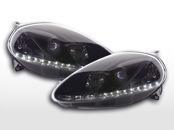 Scheinwerfer Daylight Fiat Grande Punto Typ 199 Bj. 05-08 schwarzDie Daylight Scheinwerfer weisen nicht nur in der Nacht sondern auch schon am Tag eine hervorragende sportliche Erscheinung für Ihr Auto aus. Die Eleganten LEDs verleihen Ihrem Auto eine Top Tuning Optik und nebenbei werden Sie auch noch von den anderen Verkehrsteilnehmer besser wahrgenommen! Mit dem Austausch Ihrer Serienscheinwerfer in die Daylightscheinwerfer erhalten Sie eine komplett neue zeitlose exklusive und sportliche Fahrzeugoptik! Nur nebenbei bemerkt sind die Daylight-Scheinwerfer das abgesagteste Design in Sachen Tuningscheinwerfer und verleihen Ihrem Fahrzeug auch eine sportlich aggressive Optik bei Tag und bei Nacht!KEINE KOSTEN EINTRAGUNGSFREI: Die Daylight Scheinwerfer werden mit e-Zeichen ausgeliefert und sind somit eintragungsfrei. GERINGE EINBAUKOSTEN: Die Daylight Scheinwerfer mit integrierten Tagfahrlicht oder auch Tagfahrleuchte genannt können problemlos von jeder Fachwerkstatt binnen ca. 2 Stunden eingebaut werden. Einbauanleitung: Die Scheinwerfer werden komplett mit Kabelbaum und einer "englischen" Einbauanleitung ausgeliefert. Die Qualität: der Scheinwerfer ist mit Erstausrüsterqualität zu vergleichen und werden von namhaften Produzenten für den Tuningbereich produziert. Der Preis: Im Regelfall sind diese Tuningscheinwerfer immer günstiger als die Originalen Scheinwerfer. Hier lohnt sich ein Preischeck, selbst wenn nur im Falle einen Unfalls nur ein Scheinwerfer defekt sein sollte. Die Daylight Scheinwerfer sind eine günstige Umrüstmöglichkeit im Falle eines Unfalls oder eine Nachrüstung.Die Scheinwerfer Technik: Die Scheinwerfer sind nicht nur technisch sondern auch optisch ausgereift und sind im übrigen schon 100.000 fach erfolgreich weltweit eingebaut. Sie möchten Ihrem Fahrzeug eine sportliche Note geben? Dann sollten Sie gleich dieses tolle Scheinwerferset bestellen. Weitere Ausführungsdetails: Scheinwerfer Klarglasoptik mit transparenter Streuscheibeverbesserte Lichtausbeute durch Klarglasscheibe und verbesserter Reflektorenwenn nicht anders angegeben inkl. elektrischer LWR ( Leuchtweitenregulierung ) Anschluss erfolgt über fahrzeugspezifischen Stecker Leuchtmittel sind im Lieferumfang nicht enthaltenkeine Eintragung und Eintragungskosten in die Papiere nötig, da mit "E" Prüfzeichen versehen Einfache Montage da die Original Scheinwerfer Befestigungspunkte des Fahrzeugs verwendet !Lange Lebensdauer durch die Verwendung von hochwertigen Material und ChormbeschichtungenLieferumfang:1 Satz Scheinwerfer ( links + rechts )