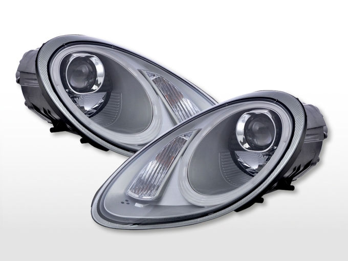 Scheinwerfer Daylight LED TFL-Optik Porsche Boxster Typ 987 Bj. 04-09 silberDie Daylight Scheinwerfer weisen nicht nur in der Nacht sondern auch schon am Tag eine hervorragende sportliche Erscheinung für Ihr Auto aus. Die Eleganten LEDs verleihen Ihrem Auto eine Top Tuning Optik und nebenbei werden Sie auch noch von den anderen Verkehrsteilnehmer besser wahrgenommen! Mit dem Austausch Ihrer Serienscheinwerfer in die Daylightscheinwerfer erhalten Sie eine komplett neue zeitlose exklusive und sportliche Fahrzeugoptik! Nur nebenbei bemerkt sind die Daylight-Scheinwerfer das abgesagteste Design in Sachen Tuningscheinwerfer und verleihen Ihrem Fahrzeug auch eine sportlich aggressive Optik bei Tag und bei Nacht!KEINE KOSTEN EINTRAGUNGSFREI: Die Daylight Scheinwerfer werden mit e-Zeichen ausgeliefert und sind somit eintragungsfrei. GERINGE EINBAUKOSTEN: Die Daylight Scheinwerfer mit integrierten Tagfahrlicht oder auch Tagfahrleuchte genannt können problemlos von jeder Fachwerkstatt binnen ca. 2 Stunden eingebaut werden. Einbauanleitung: Die Scheinwerfer werden komplett mit Kabelbaum und einer "englischen" Einbauanleitung ausgeliefert. Die Qualität: der Scheinwerfer ist mit Erstausrüsterqualität zu vergleichen und werden von namhaften Produzenten für den Tuningbereich produziert. Der Preis: Im Regelfall sind diese Tuningscheinwerfer immer günstiger als die Originalen Scheinwerfer. Hier lohnt sich ein Preischeck, selbst wenn nur im Falle einen Unfalls nur ein Scheinwerfer defekt sein sollte. Die Daylight Scheinwerfer sind eine günstige Umrüstmöglichkeit im Falle eines Unfalls oder eine Nachrüstung.Die Scheinwerfer Technik: Die Scheinwerfer sind nicht nur technisch sondern auch optisch ausgereift und sind im übrigen schon 100.000 fach erfolgreich weltweit eingebaut. Sie möchten Ihrem Fahrzeug eine sportliche Note geben? Dann sollten Sie gleich dieses tolle Scheinwerferset bestellen. Weitere Ausführungsdetails: Scheinwerfer Klarglasoptik mit transparenter Streuscheibeverbesserte Lichtausbeute durch Klarglasscheibe und verbesserter Reflektorenwenn nicht anders angegeben inkl. elektrischer LWR ( Leuchtweitenregulierung ) Anschluss erfolgt über fahrzeugspezifischen Stecker Leuchtmittel sind im Lieferumfang nicht enthaltenkeine Eintragung und Eintragungskosten in die Papiere nötig, da mit "E" Prüfzeichen versehen Einfache Montage da die Original Scheinwerfer Befestigungspunkte des Fahrzeugs verwendet !Lange Lebensdauer durch die Verwendung von hochwertigen Material und ChormbeschichtungenLieferumfang:1 Satz Scheinwerfer ( links + rechts )