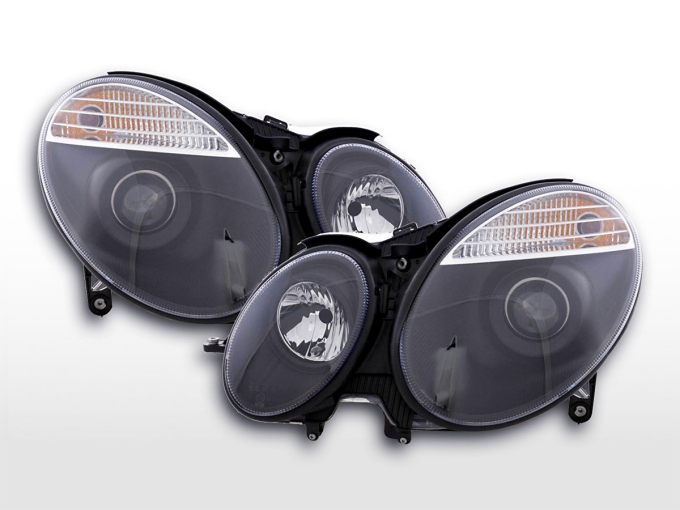 Scheinwerfer Mercedes E-Klasse Typ W211 Bj. 02-06 schwarzDie Designscheinwerfer ändern die Erscheinung Ihres Fahrzeuges in eine sportliche und zeitlose Optik. Durch die Klarglasoptik werden zudem die Licht und Sichtverhältnisse Ihres Scheinwerfers deutlich verbessert und optimiert. Die sportliche Erscheinung ist dabei nur eine gewünschte und gern gesehene Nebensache! Die Designscheinwerfer haben eine Top Optik zum günstigen Preis und im Regelfall auch deutlich günstiger als originale Austauschscheinwerfer.KEINE KOSTEN EINTRAGUNGSFREI: Die Design Scheinwerfer werden mit e-Zeichen ausgeliefert ( wenn nicht anders angegeben ) und sind somit eintragungsfrei GERINGE EINBAUKOSTEN: Die Design Scheinwerfer können problemlos von jeder Fachwerkstatt binnen ca. 2 Stunden eingebaut werden. Einbauanleitung: Die Scheinwerfer werden komplett mit Kabelbaum und einer englischen Einbauanleitung ausgeliefert. Die Qualität: Die Scheinwerfer sind mit Erstausrüsterqualität zu vergleichen und werden von namhaften Produzenten für den Tuningbereich produziert. Der Preis: Im Regelfall sind diese Tuningscheinwerfer immer günstiger als die originalen Scheinwerfer. Hier lohnt sich ein Preischeck, selbst wenn im Falle eines Unfalls nur ein Scheinwerfer defekt sein sollte. Die Design Scheinwerfer sind eine günstige Umrüstmöglichkeit im Falle eines Unfalls oder einer Nachrüstung. Die Scheinwerfer Technik: Die Scheinwerfer sind nicht nur technisch sondern auch optisch ausgereift und sind im übrigen schon 100.000 fach erfolgreich weltweit eingebaut. Sie möchten Ihrem Fahrzeug eine sportliche Note geben? Dann sollten Sie gleich dieses tolle Scheinwerferset bestellen. Weitere Ausführungsdetails: • Scheinwerfer Klarglasoptik mit transparenter Streuscheibe• verbesserte Lichtausbeute durch Klarglasscheibe und verbesserter Reflektoren• wenn nicht anders angegeben inkl. elektrischer LWR ( Leuchtweitenregulierung ) • Anschluss erfolgt über fahrzeugspezifischen Stecker • Leuchtmittel sind im Lieferumfang nicht enthalten• keine Eintragung und Eintragungskosten in die Papiere nötig, da mit E Prüfzeichen versehen • Einfache Montage da die Original Scheinwerfer Befestigungspunkte des Fahrzeugs verwendet werden• Lange Lebensdauer durch die Verwendung von hochwertigen Material und ChrombeschichtungenLieferumfang:• 1 Satz Scheinwerfer ( links + rechts )