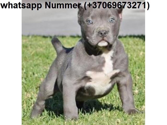 .Unsere Pitbull Welpen sind 10 Wochen alt, haben einen EU Ausweis, sind komplett geimpft, entwurmt und gechipt. Pit Bull Welpen sind zärtlich, verspielt, wachsam, sehr kinderlieb und leicht zu erziehen. Sie gehen gerne spazieren, können auf lange Wanderungen aber gerne verzichten. Es sind echte Familienhunde, sie können auch überallhin mitgenommen werden. Preis von fauvefarbenden Pit Welpen 455 EUROS pro Welpe. Wir freuen uns über Ihre Anfrage whatsapp Nummer Bitte kontaktieren Sie uns direkt auf whatsapp Nummer (+37069673271)