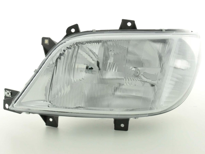 Verschleißteile Scheinwerfer links Mercedes Benz Sprinter Bj. 00-02Die Zubehör Scheinwerfer sind die perfekte Alternative zu den Originalscheinwerfer jedoch preistechnisch im Regelfall deutlich günstiger. Es ist schon ärgerlich genug wenn man in einen Unfall verwickelt war und dann mit hohen Kosten für die Reparatur konfrontiert wird. Mit den Zubehörscheinwerfern haben Sie die Möglichkeit Geld zu sparen und bei der Qualität der Scheinwerfer keine Einbußen zu haben. KEINE KOSTEN EINTRAGUNGSFREI: Die Zubehör Scheinwerfer werden mit e-Zeichen ausgeliefert und sind somit eintragungsfrei GERINGE EINBAUKOSTEN: Die Zubehörscheinwerfer können problemlos von jeder Fachwerkstatt binnen ca. 2 Stunden eingebaut werden. Einbauanleitung: Die Scheinwerfer werden teilweise komplett mit Kabelbaum und einer englischen Einbauanleitung ausgeliefert oder mittels Stecker die auf den Serienkabelbaum passen. Die Qualität: Die Scheinwerfer sind mit Erstausrüsterqualität zu vergleichen und werden von namhaften Produzenten für das Zubehörgeschäft produziert.Der Preis: Im Regelfall sind diese Zubehörscheinwerfer immer günstiger als die Originalen Scheinwerfer. Hier lohnt sich ein Preischeck, selbst wenn im Falle einen Unfalls nur ein Scheinwerfer defekt sein sollte. Die Zubehörscheinwerfer sind eine günstige Umrüstmöglichkeit im Falle eines Unfalls oder im Falle einer Nachrüstung wenn die Streuscheibe bei Steinschlägen in Mitleidenschaft gezogen wurde!Die Scheinwerfer Technik: Die Scheinwerfer sind nicht nur technisch sondern auch optisch ausgereift und sind im übrigen schon 100.000 fach erfolgreich weltweit eingebaut. Sie möchten Ihrem Fahrzeug eine sportliche Note geben? Dann sollten Sie gleich dieses tolle Scheinwerferset bestellen. Weitere Ausführungsdetails: • Scheinwerfer in Originaloptik mit entsprechender Technik• verbesserte Lichtausbeute durch verbesserter Reflektoren und neuerer Technik• wenn nicht anders angegeben inkl. elektrischer LWR ( Leuchtweitenregulierung ) • Anschluss erfolgt über fahrzeugspezifischen Stecker • Leuchtmittel sind im Lieferumfang nicht enthalten• keine Eintragung und Eintragungskosten in die Papiere nötig, da mit E Prüfzeichen versehen • Einfache Montage da die Original Scheinwerfer Befestigungspunkte des Fahrzeugs verwendet werden• Lange Lebensdauer durch die Verwendung von hochwertigen Material und Chrombeschichtungen Lieferumfang:• 1 Scheinwerfer wie angegebenen rechts oder links