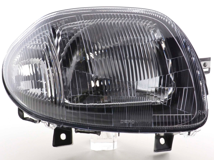 Verschleißteile Scheinwerfer rechts Renault Clio (Typ B) Bj. 98-01Die Zubehör Scheinwerfer sind die perfekte Alternative zu den Originalscheinwerfer jedoch preistechnisch im Regelfall deutlich günstiger. Es ist schon ärgerlich genug wenn man in einen Unfall verwickelt war und dann mit hohen Kosten für die Reparatur konfrontiert wird. Mit den Zubehörscheinwerfern haben Sie die Möglichkeit Geld zu sparen und bei der Qualität der Scheinwerfer keine Einbußen zu haben. KEINE KOSTEN EINTRAGUNGSFREI: Die Zubehör Scheinwerfer werden mit e-Zeichen ausgeliefert und sind somit eintragungsfrei GERINGE EINBAUKOSTEN: Die Zubehörscheinwerfer können problemlos von jeder Fachwerkstatt binnen ca. 2 Stunden eingebaut werden. Einbauanleitung: Die Scheinwerfer werden teilweise komplett mit Kabelbaum und einer englischen Einbauanleitung ausgeliefert oder mittels Stecker die auf den Serienkabelbaum passen. Die Qualität: Die Scheinwerfer sind mit Erstausrüsterqualität zu vergleichen und werden von namhaften Produzenten für das Zubehörgeschäft produziert.Der Preis: Im Regelfall sind diese Zubehörscheinwerfer immer günstiger als die Originalen Scheinwerfer. Hier lohnt sich ein Preischeck, selbst wenn im Falle einen Unfalls nur ein Scheinwerfer defekt sein sollte. Die Zubehörscheinwerfer sind eine günstige Umrüstmöglichkeit im Falle eines Unfalls oder im Falle einer Nachrüstung wenn die Streuscheibe bei Steinschlägen in Mitleidenschaft gezogen wurde!Die Scheinwerfer Technik: Die Scheinwerfer sind nicht nur technisch sondern auch optisch ausgereift und sind im übrigen schon 100.000 fach erfolgreich weltweit eingebaut. Sie möchten Ihrem Fahrzeug eine sportliche Note geben? Dann sollten Sie gleich dieses tolle Scheinwerferset bestellen. Weitere Ausführungsdetails: • Scheinwerfer in Originaloptik mit entsprechender Technik• verbesserte Lichtausbeute durch verbesserter Reflektoren und neuerer Technik• wenn nicht anders angegeben inkl. elektrischer LWR ( Leuchtweitenregulierung ) • Anschluss erfolgt über fahrzeugspezifischen Stecker • Leuchtmittel sind im Lieferumfang nicht enthalten• keine Eintragung und Eintragungskosten in die Papiere nötig, da mit E Prüfzeichen versehen • Einfache Montage da die Original Scheinwerfer Befestigungspunkte des Fahrzeugs verwendet werden• Lange Lebensdauer durch die Verwendung von hochwertigen Material und Chrombeschichtungen Lieferumfang:• 1 Scheinwerfer wie angegebenen rechts oder links